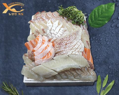 견본구성 : 50%방어회와 50%참돔회으로 구성된 메뉴입니다