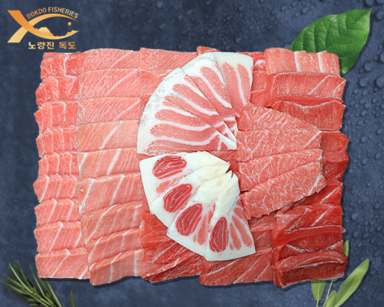 참다랑어 특성상 해동후 무채에 붉은 핏기가 있을수있습니다
